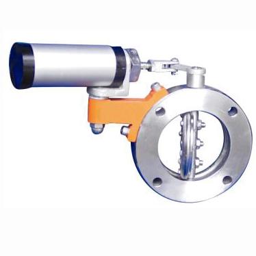 GIQ(D)型高真空蝶閥是由執行機構(氣動,電動)與轉角型蝶閥體二部份組邁出,中間由支架相連而邁出.以GIQ型為例:執行機構是由雙氣路氣缸為讓體,接受二位四通電磁閥控制輸出的(0.4-0.6MPa)氣源信號壓力為動力,通過控制元件改變氣流方向,執行氣缸驅動蝶閥作啟閉運動.